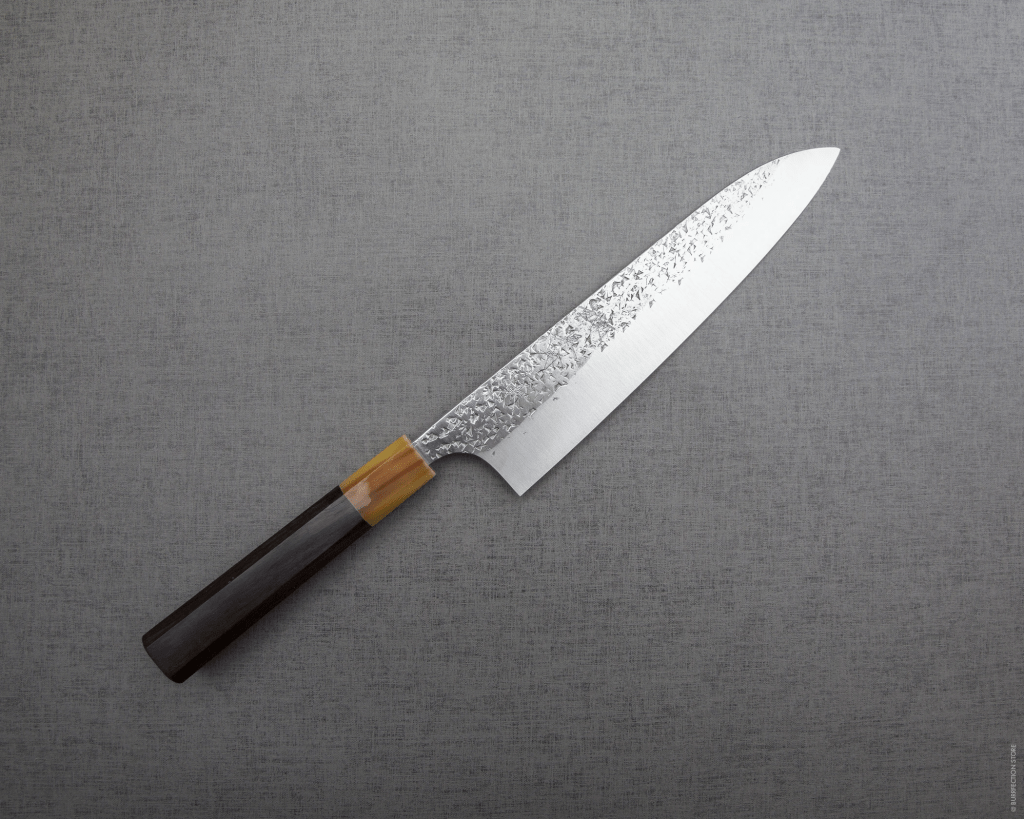 A young artisan in his forties, Yu Kurosaki (黒崎 優) has become one of leading knife makers in Japan, winning top awards and attention for his hand-forged knives especially his Tsuchime and Suminagashi finish.